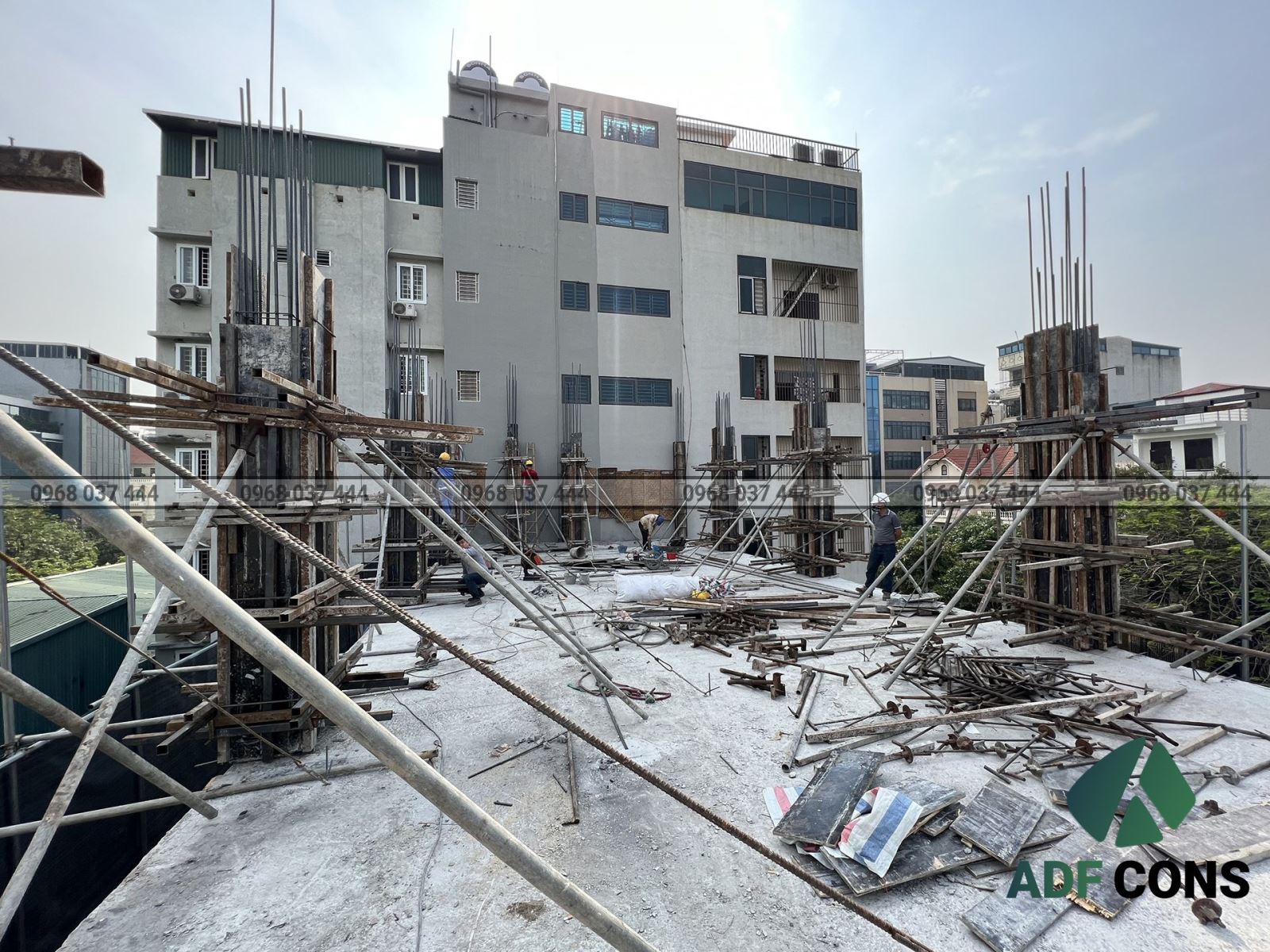 Hoàn thiện đổ bê tông cột cho công trình tòa nhà cao tầng Việt Thái